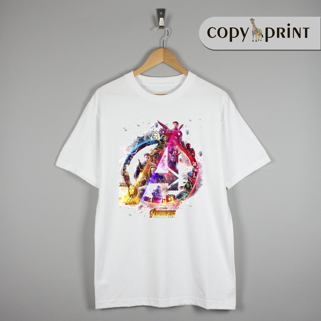 Футболка з принтом на тему культової франшизи марвел — Месники (Avengers). Багатосерійний фільм про супергероїв. Халк, Залізна людина, Тор, Капітан Америка, Локі та інші.