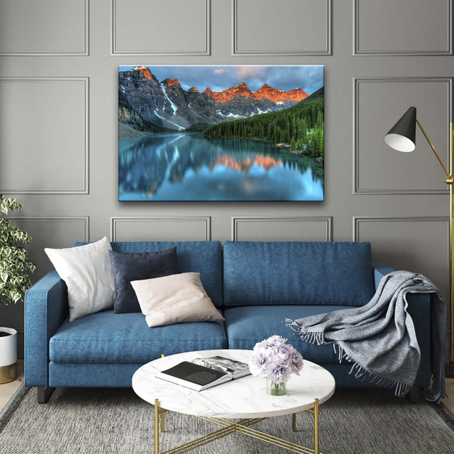 Виготовлення картин на полотні відбувається через широкоформатний друк на вологостійким дрібнозернистому полотні. Друк на полотні УФ-стійке чорнило (якість 1440dpi), матове лакове покриття. Після друку ми натягуємо полотно на підрамник із сухого дерева (сосна) і встановлюємо кріплення для підвішування. Зрештою виходить готова картина.