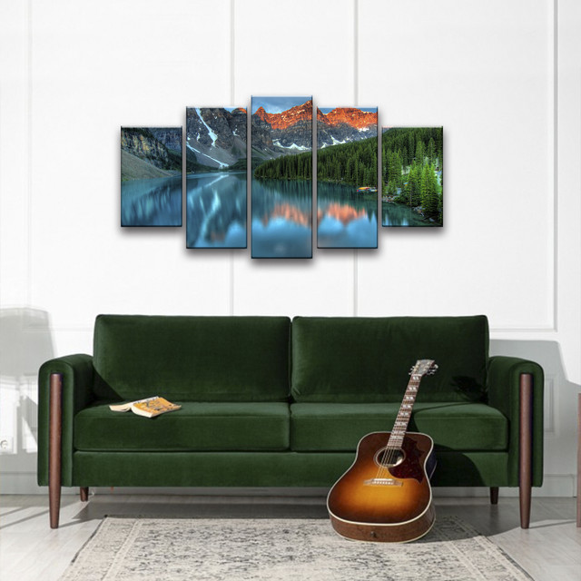 - З 5ти частин (25х40см, 25х55см, 25х80см, 25х55см, 25х40см) загальний розмір композиції 125х80см. (без урахування відступів між картинами)