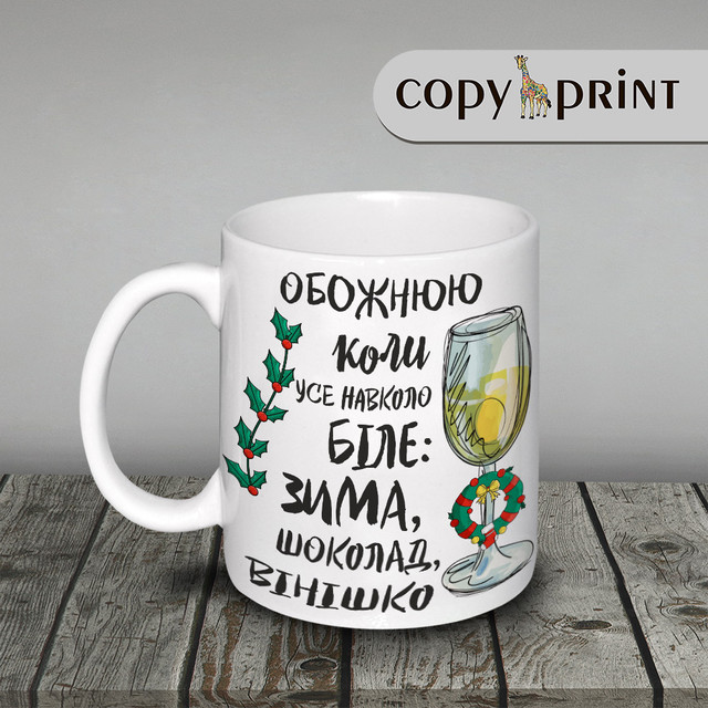 Опис: Новорічна чашка, чудовий подарунок на таке веселе і світле свято, як Новий рік. З майбутнім святом і бажано Вам усього найкращого в новому році!