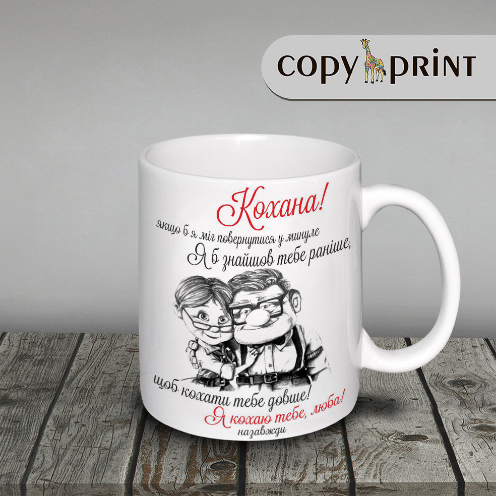 Опис: чашка для коханої людини, чудовий подарунок, який підкреслить Ваше ставлення до цієї людини та до того ж слугуватиме чудову практичну функцію, насолоджуючись смачним чаєм, Ваш улюблений чоловік завжди буде спітніти про Вас.
