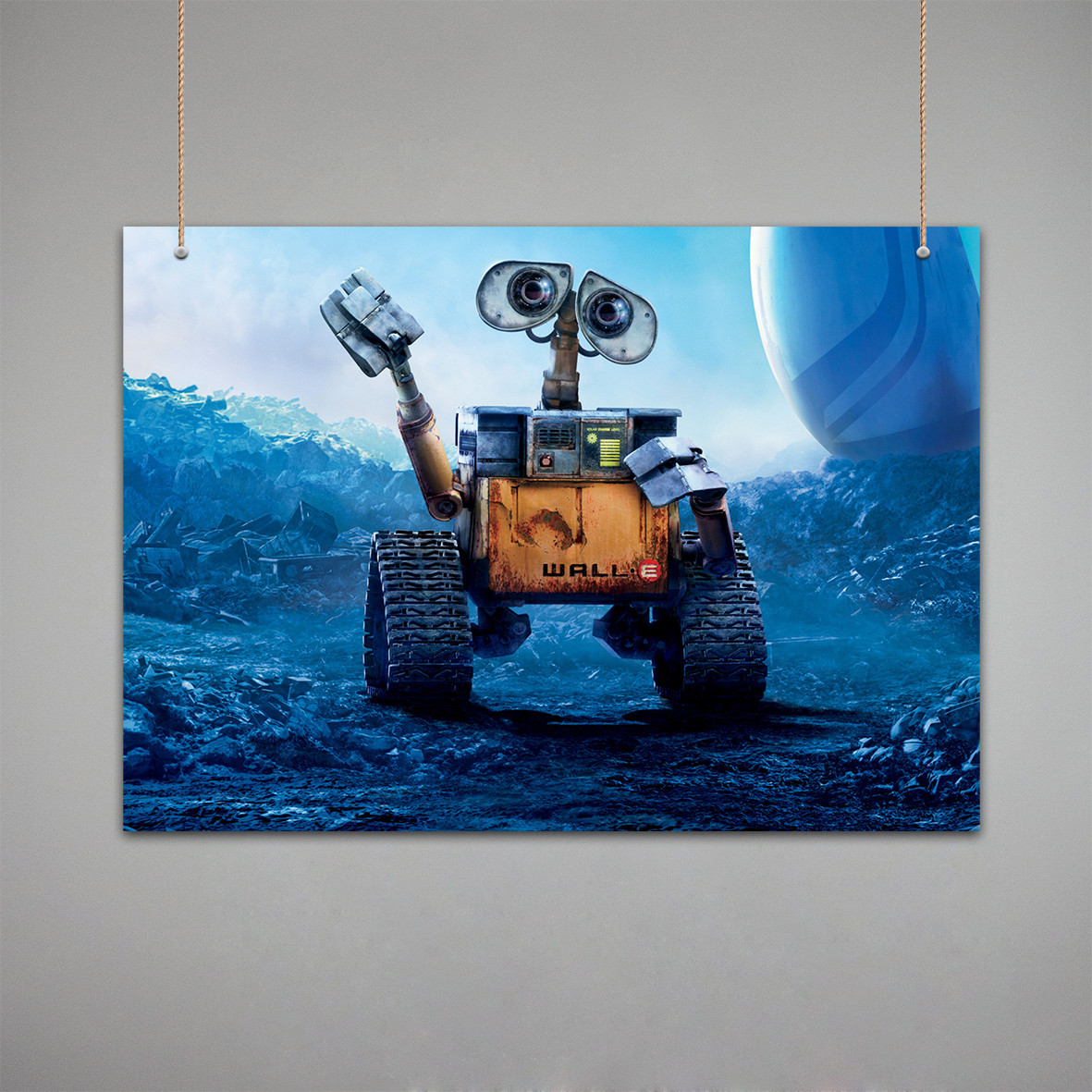 Плакат із принтом популярного мультфільму ВАЛ-І, WALL-E. Зворотна абревіатура Waste Allocation Load Lifter, Earth-class (вантажувач утилізованих відходів класу "Земля")